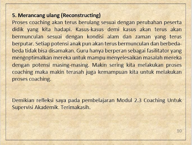 - Meningkatkan keterampilan dan kompetensi diri selalu merefleksi dan mengevaluasi setiap kegiatan pembelajaran. Agar mampu mengetahui hasil pembelajaran sehingga dapat meningkatkan atau mengembangkan apa yang telah dilaksanakan selama mengajar.